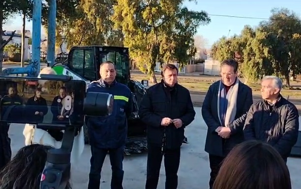 En un acto encabezado por autoridades provinciales y locales, se presentó en Las Grutas una nueva mini cargadora con accesorios para tareas de mantenimiento y obra en redes de agua potable. La adquisición forma parte del plan de fortalecimiento del equipamiento operativo de Aguas Rionegrinas (ARSA), orientado a dotar de mayor autonomía a las delegaciones del organismo en cada localidad.