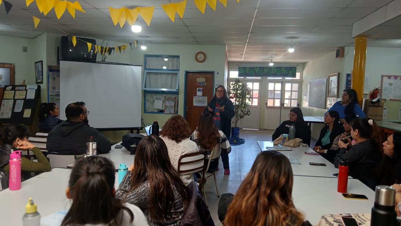 Durante la jornada inaugural, la artista Carolina Perazzoli presentó la charla “Imaginario de la biodiversidad en la Bahía San Antonio”, en la que compartió su trabajo plástico y reflexionó sobre cómo la creatividad puede ser una herramienta para explorar y cuidar el entorno. Participaron estudiantes del IFDC, docentes y vecinos de la comunidad.