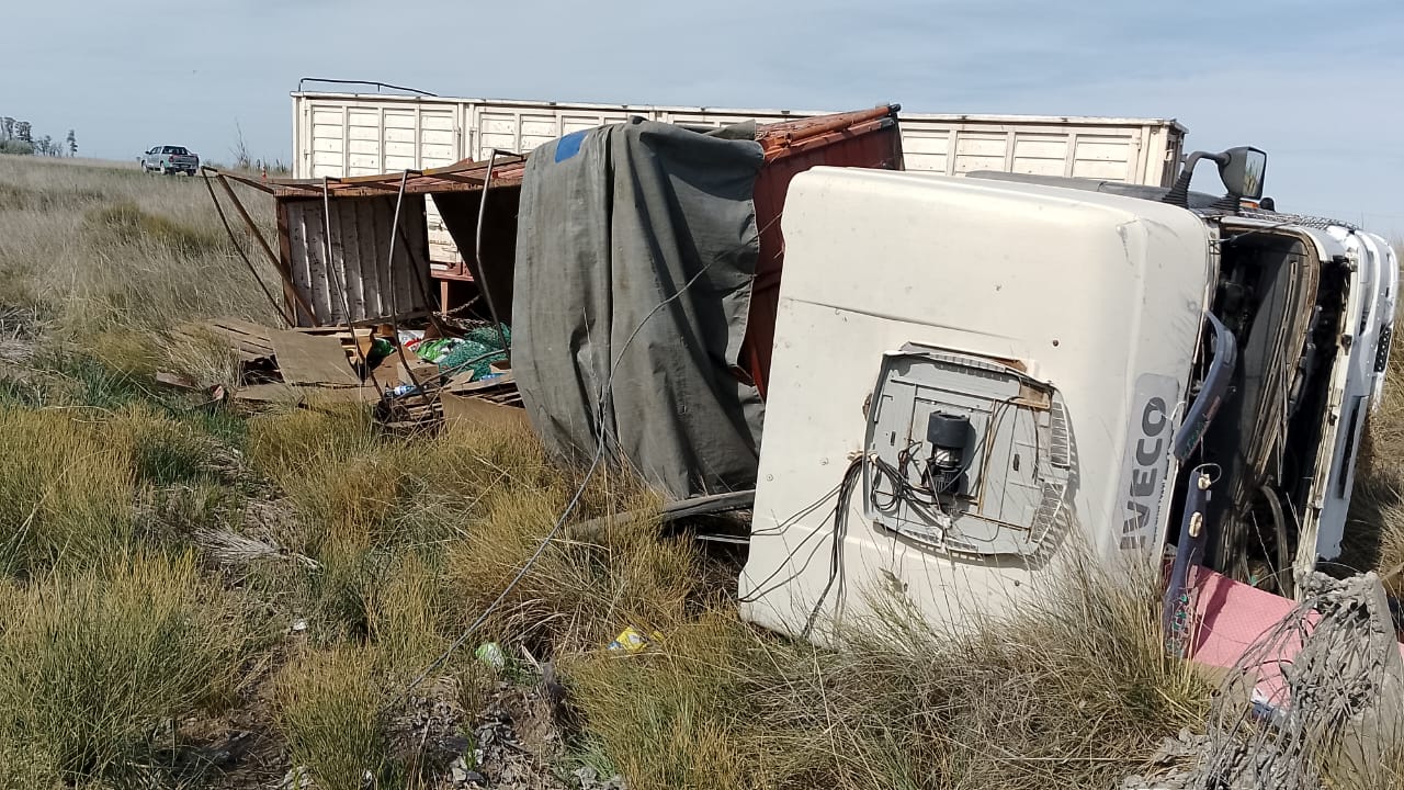 El hecho ocurrió minutos antes de las 10:00, cuando un camión Iveco con semirremolque, conducido por un hombre de 61 años oriundo de San Antonio Oeste, se despistó, chocó y volcó.