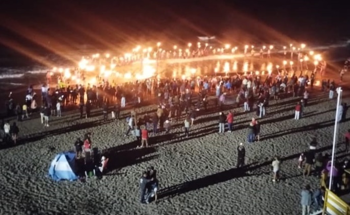 La actividad, que tuvo como escenario uno de los puntos emblemáticos de la villa balnearia de Las Grutas, marcó un hecho significativo para la comunidad costera, ya que fue la primera vez que se organizó una bajada de antorchas con esta modalidad, con la intención de institucionalizarla como parte del calendario anual.