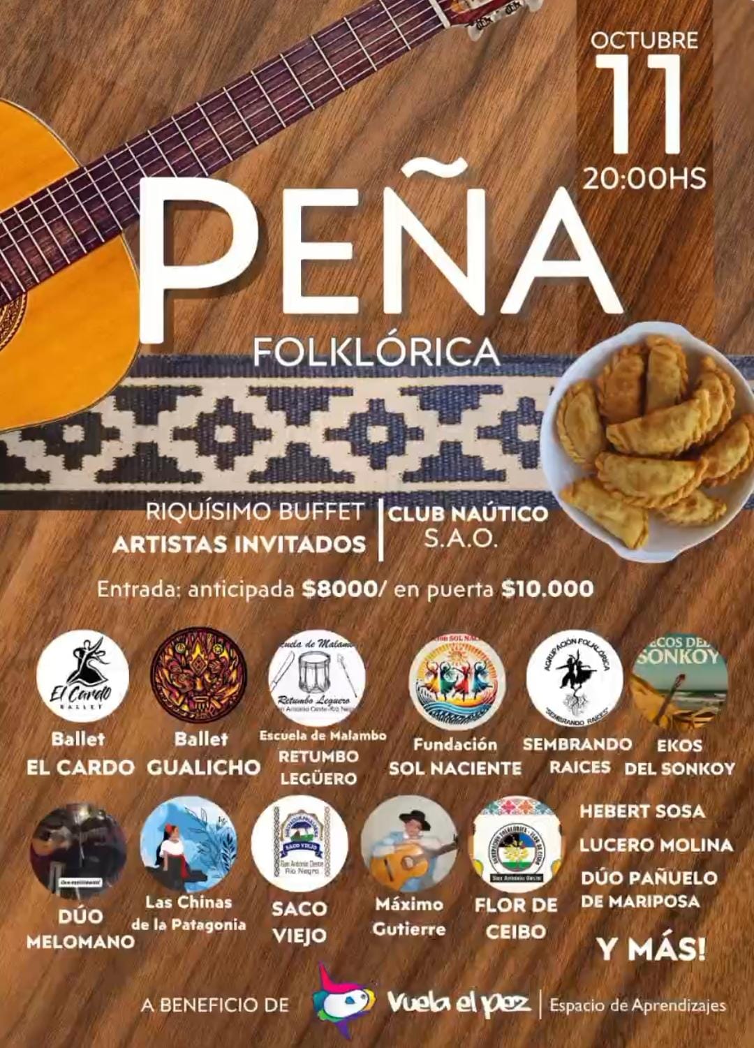 La Asociación Civil Vuela el Pez, reconocida por su compromiso con la educación alternativa y autogestiva, realizará una Peña Folclórica solidaria este sábado 11 de octubre desde las 20 horas en el Club Náutico de San Antonio Oeste, con el objetivo de recaudar fondos para la construcción de su edificio escolar.