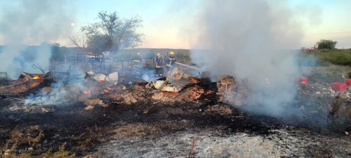 El fuego afectó corrales de gallinas, un sector de acopio de cajones y botellas plásticas de gaseosa, además de otros residuos acumulados en un área de 50 por 20 metros.