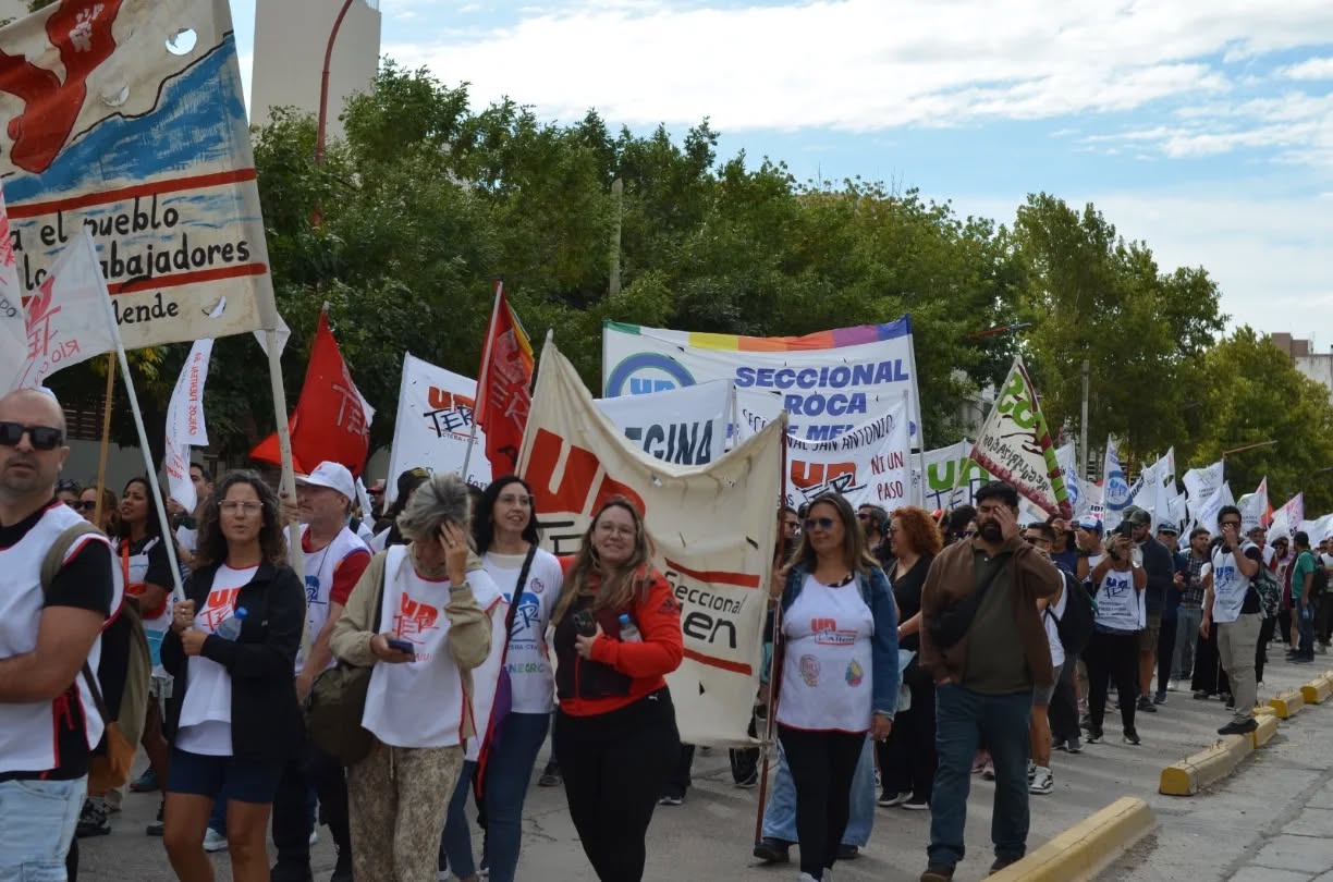 La jornada de protesta del 2 de marzo incluyó una movilización en la ciudad de Cipolletti, en el marco del paro nacional convocado por la Confederación de Trabajadores de la Educación de la República Argentina (CTERA).