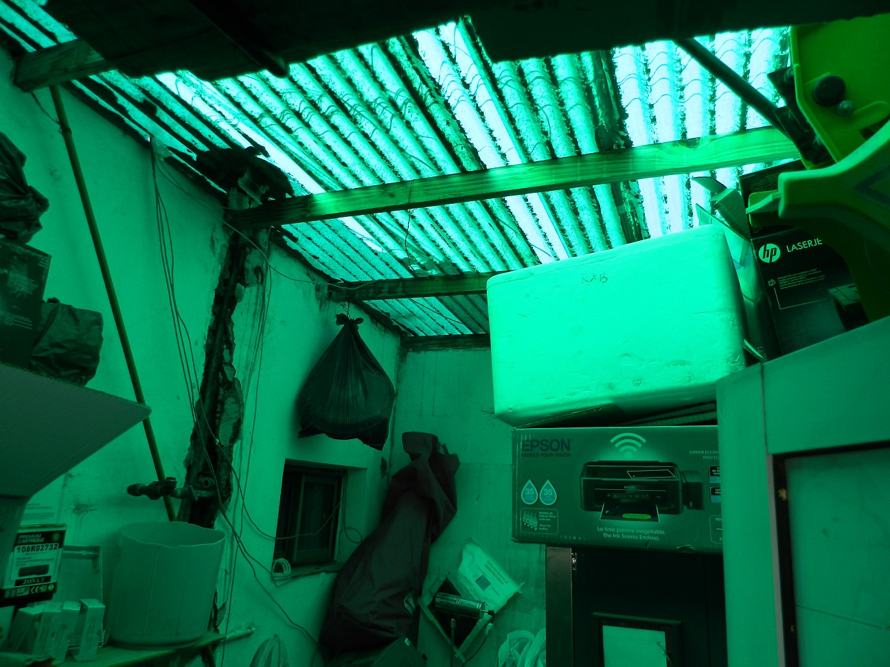-No se hizo el cielorraso suspendido en el depósito, sigue igual con chapa de fibra de vidrio.