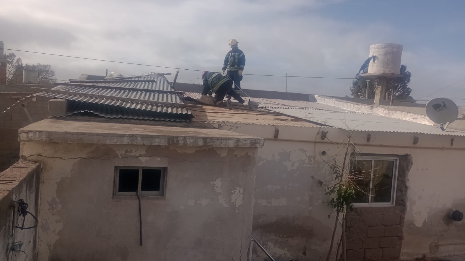 La situación se agravó cerca de las 10:45, cuando se informó sobre el desprendimiento parcial del techo de una vivienda en la intersección de Islas Malvinas y Lavalle. Hasta allí se movilizó una dotación del cuartel central con tres bomberos a bordo del móvil 19. Al arribar, constataron que la vivienda se encontraba sin ocupantes, pero que la mitad del techo de chapa había sido arrancado por el viento, quedando en riesgo de caer sobre propiedades linderas. Ante este escenario, el personal decidió ingresar al inmueble y asegurar la estructura para evitar mayores daños.