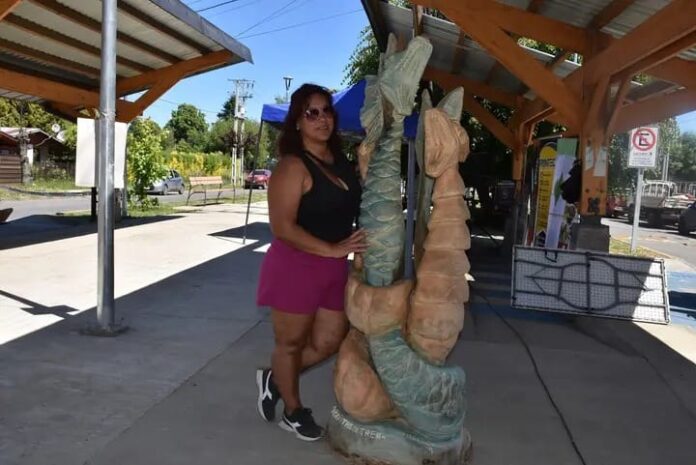 “Fui del team madera”, relató. “Me tocó trabajar con un tronco de laurel, una madera muy noble, muy linda. Nunca había trabajado con una madera así: es blanda, permite hacer más detalles y eso me dejó muy conforme con la obra final”. La pieza elaborada por Gómez estuvo inspirada en la eyenda mapuche de Caicai Vilu y Trentren Vilu, las serpientes del agua y de la tierra, que representan el equilibrio entre el bien y el mal y forman parte de la cosmovisión patagónica sobre la creación del territorio.