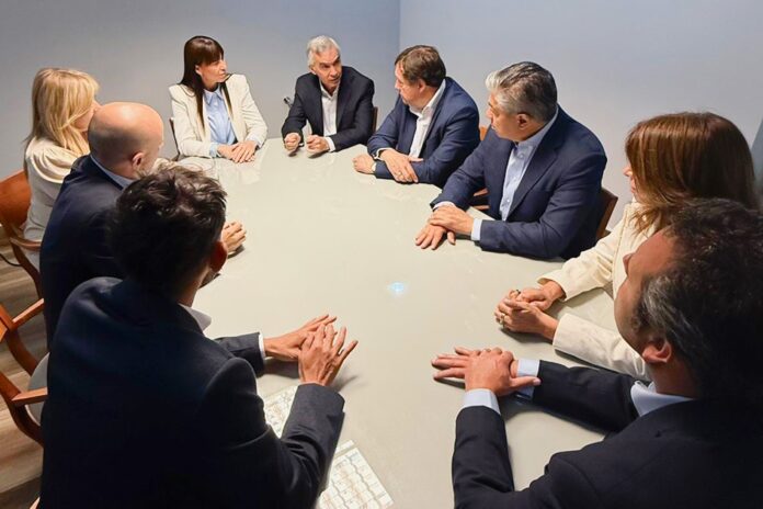 Los gobernadores de Neuquén, Rolando Figueroa y de Río Negro, Alberto Weretilneck, mantuvieron un encuentro junto a los candidatos a senadores y diputados de ambas fuerzas. Durante la reunión se analizaron los temas que serán prioritarios en la agenda conjunta a partir del 10 de diciembre, con el objetivo de fortalecer el trabajo en equipo, coordinar estrategias en el Congreso Nacional y proyectar una participación activa en áreas clave como la Comisión de Energía.