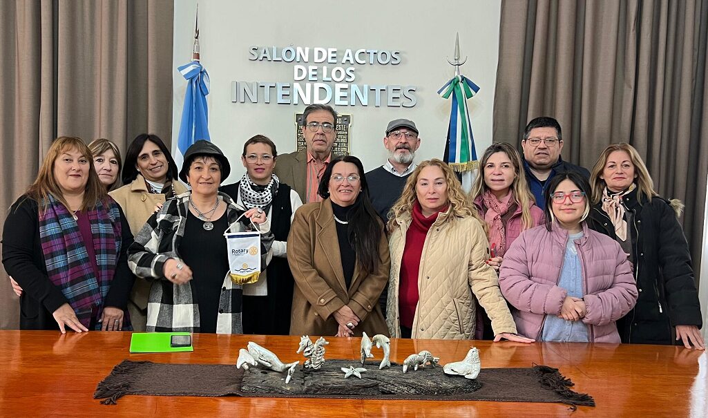 El Intendente, Adrián Casadei, recibió a los integrantes del recientemente conformado Rotary Club Las Grutas, encabezado por su presidenta Ayelén Portone, la cual es una organización de servicio que busca promover valores como la paz, la salud, la educación y el desarrollo económico, a través del trabajo social y el compromiso comunitario.