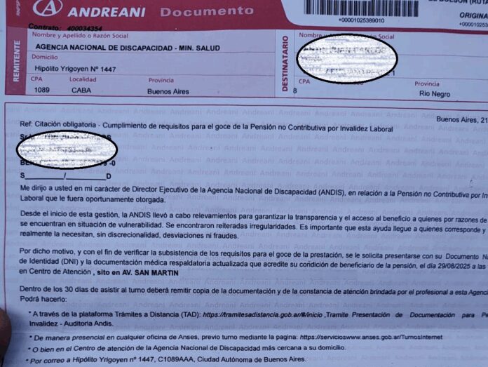 De acuerdo con lo informado, los telegramas especifican día, hora y lugar de las entrevistas, que en esta jurisdicción se realizarán en instalaciones del PAMI. En esas instancias, los beneficiarios deberán presentar documentación médica vigente. “Lo que se manifiesta en el telegrama es que tienen que concluir con una certificación, con su certificación o sus certificados médicos actualizados. Lo que se está auditando son las pensiones por invalidez laboral”, explicó la funcionaria.