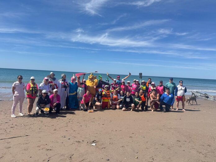 El encuentro comenzó a las 10 de la mañana en la tercera bajada de Las Grutas, donde decenas de participantes se sumaron con kayaks y embarcaciones para acompañar la iniciativa. El evento, que busca visibilizar la importancia de la detección temprana del cáncer de mama, contó con el apoyo de guardavidas, Prefectura Naval Argentina, y vecinos que colaboraron con la organización y la logística.