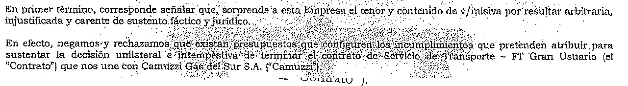 La situación por el corte de suministro, según la empresa, en los cruces de notas y telegramas que InformativoHoy pudo obtener, en los mismos indica el gerente Mariano Emanuli al señalar la existencia de una controversia entre la empresa Camuzzi en relación a la finalización del contrato de servicio que terminó este lunes en el cierre del suministro.
