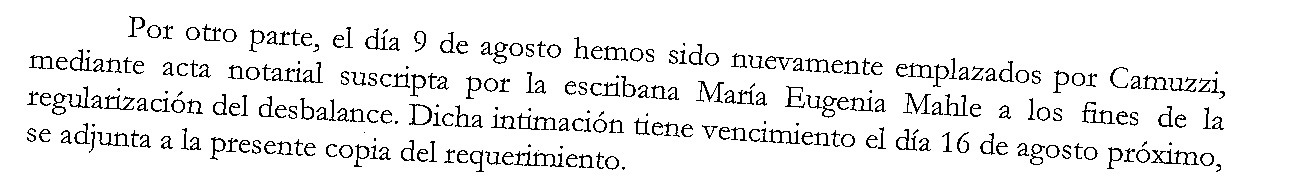 Incluso especifica que el día 16 donde debía la empresa regularizar el desbalance, en este caso sería el pago de la deuda o parte de la misma.