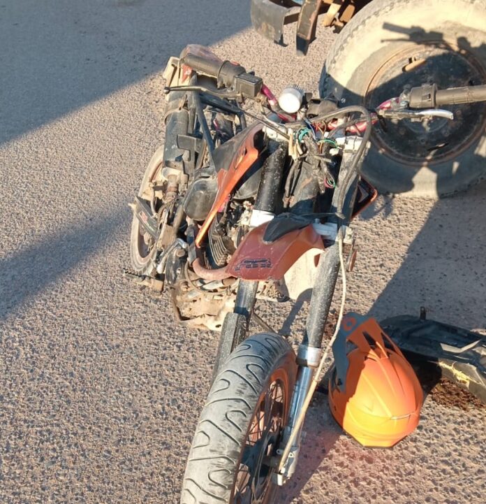 Este lunes alrededor de las 16:35 horas se registró una colisión vehicular en la intersección de calle Avellaneda, en San Antonio Oeste, que involucró a un camión Mercedes Benz doble cabina con carro tipo «zampi» y una motocicleta tipo enduro de 200 cc.