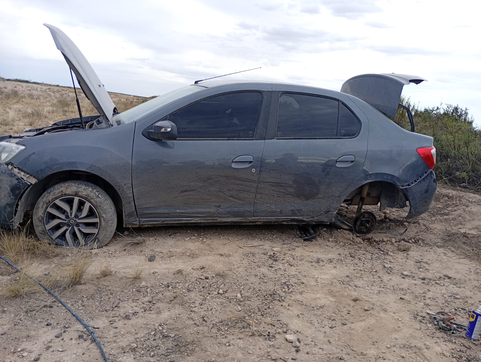 El hecho involucró a un vehículo marca Renault, conducido por un hombre oriundo de la provincia de Neuquén, quien se desplazaba acompañado por su esposa y sus dos hijos. Como consecuencia del desperfecto mecánico, el conductor perdió el control del rodado y terminó fuera de la calzada.