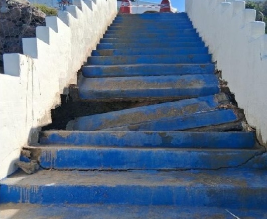 Según explicó la funcionaria, el daño se produjo como consecuencia de la combinación de intensas lluvias en cortos períodos de tiempo, el escurrimiento de un desagüe pluvial de gran magnitud y la incidencia de mareas extraordinarias, acompañadas por vientos del sector sur. “Se socavó toda la parte central de la bajada, incluso la zona de la escalera”, precisó.