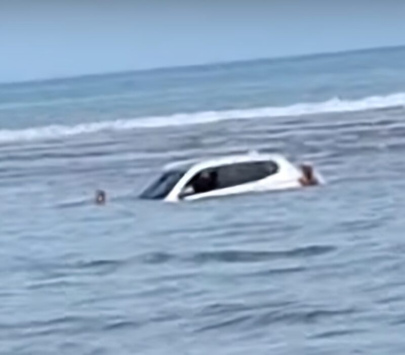 El afectado bajó con su coche hasta la orilla de la playa en Bahía Creek, quedó encajado y casi se lo lleva la marea alta.